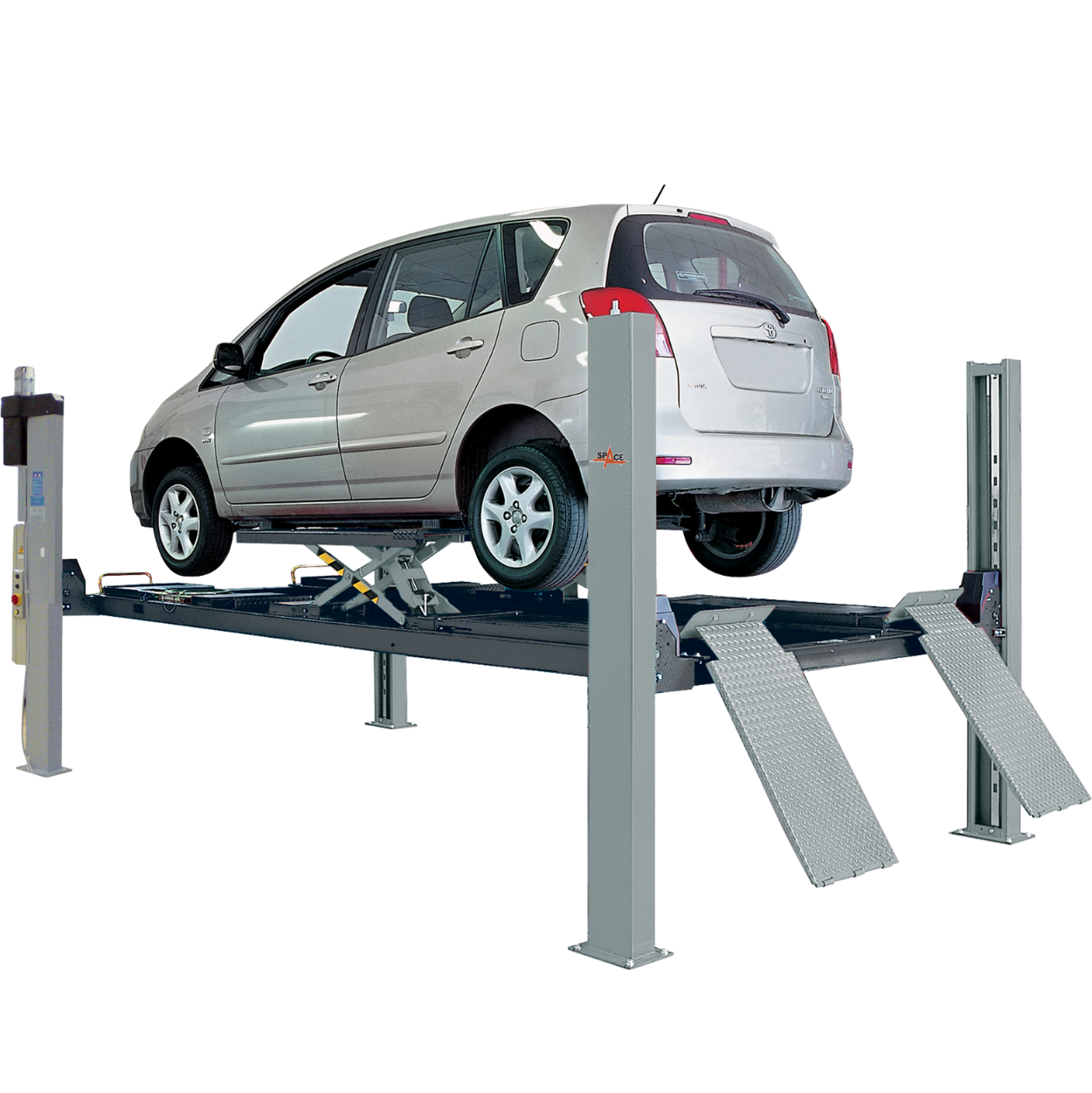 Electro-hydraulic 4 post-lift capacity 5 ton.